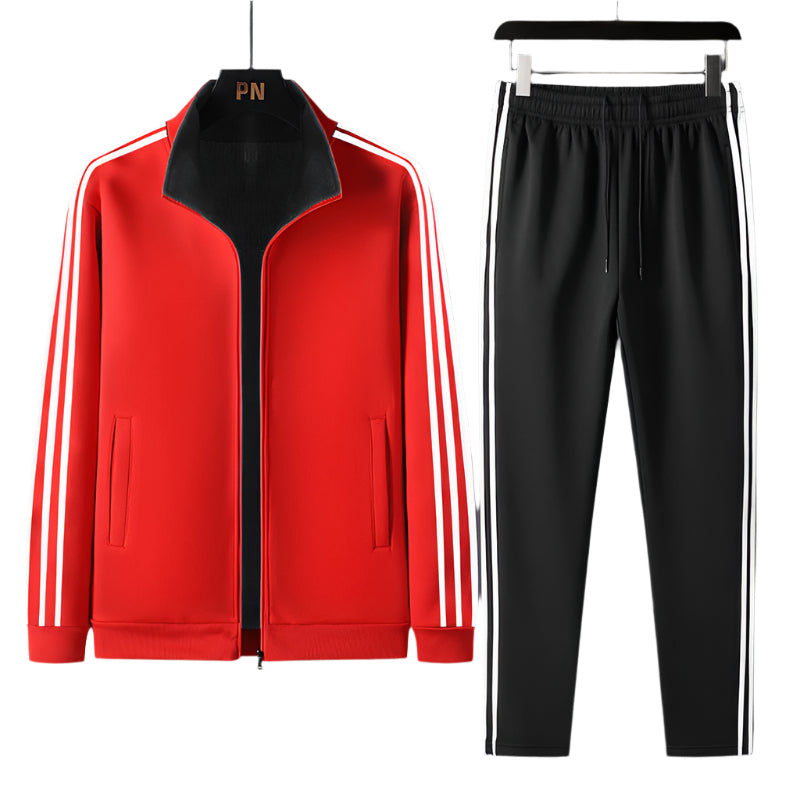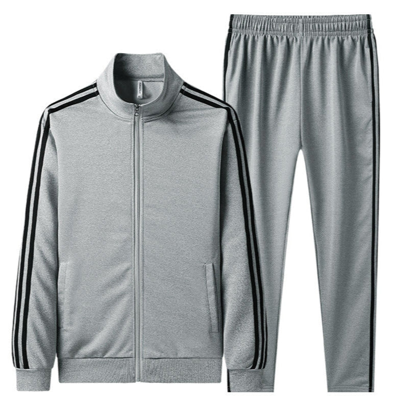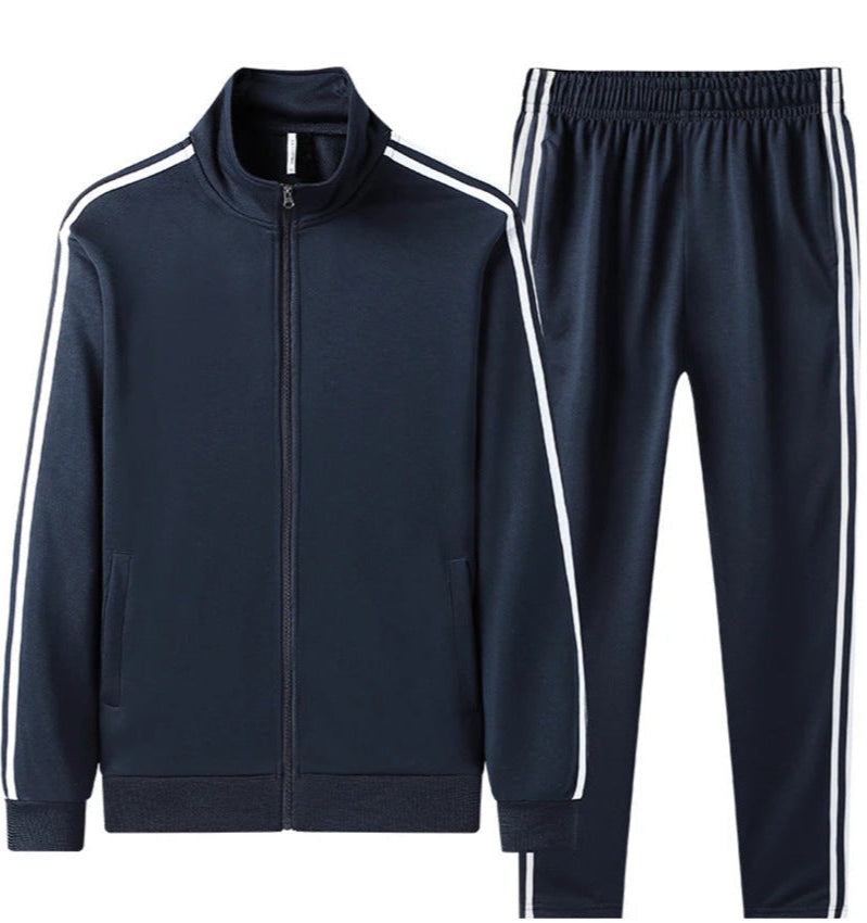 This men’s tracksuit includes a two-piece set featuring a zipper cardigan jacket and full-length trousers. Designed with long sleeves and a zip-front closure, the jacket allows for easy wear and layering. The coordinated trousers create a matching look suitable for jogging, workouts, or everyday routines. The relaxed fit and lightweight construction support a wide range of motion for different activities.