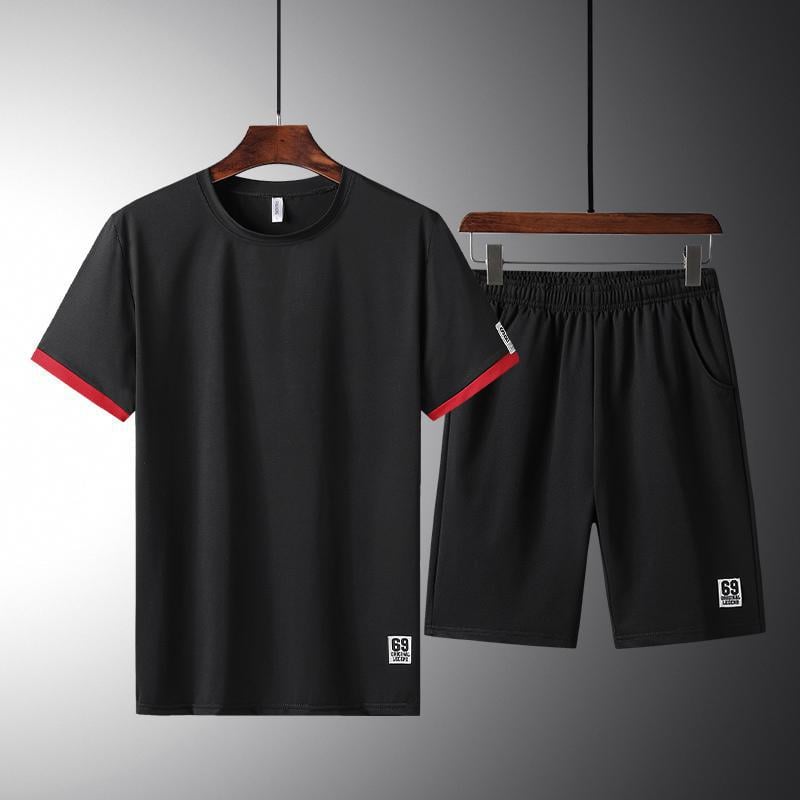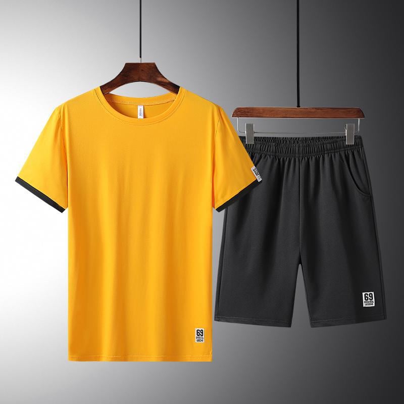 Men Summer Running Set Two-Piece Short Sleeve Top and Shorts Breathable