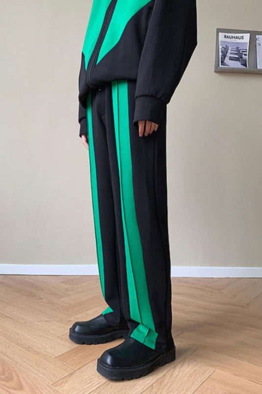 Men Spring Sports Tracksuit Loose Fit Zipper Top Long Sleeve Pants
