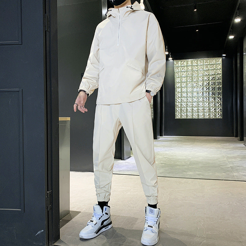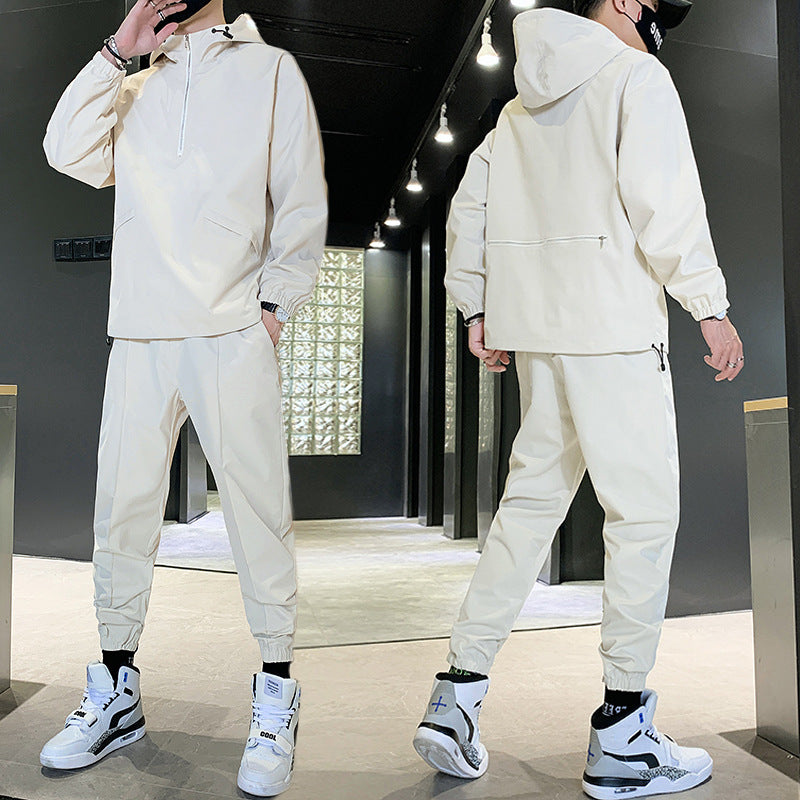 Men Spring Tracksuit Two-Piece Zip-Up Hoodie Long Sleeve Trousers