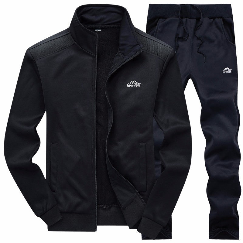 Men Autumn Two-Piece Coat Set Embroidered Stand Collar Long Sleeve