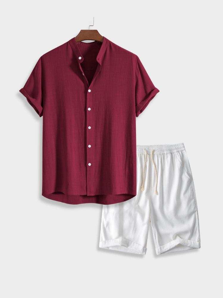 Men Spring Shirt and Shorts Set Short Sleeve Lightweight Breathable