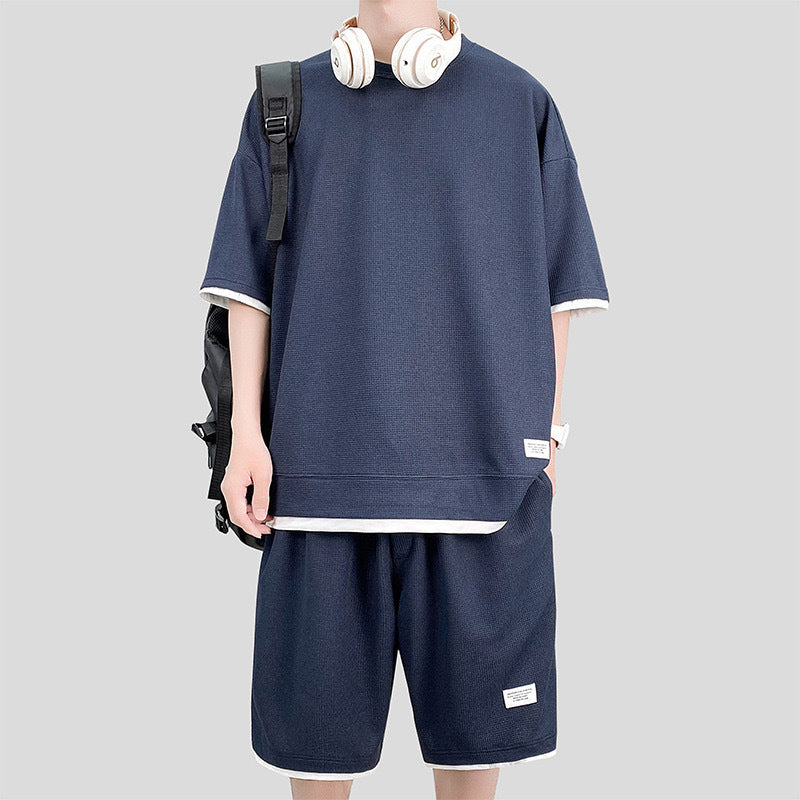 Men Summer Sports Suit Two-Piece Short Sleeve T-Shirt and Shorts Set