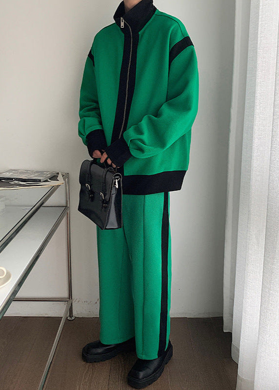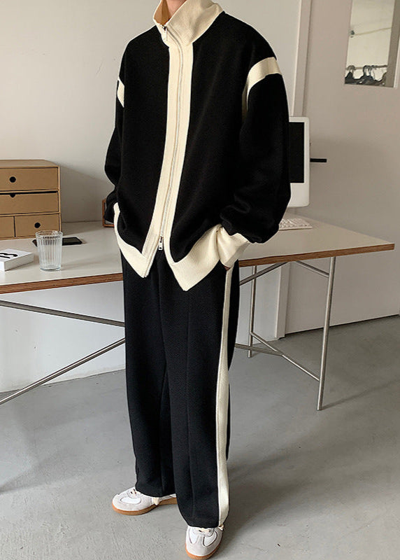 Men Spring Sports Tracksuit Double Zipper Hoodie Elastic Waistband Pants