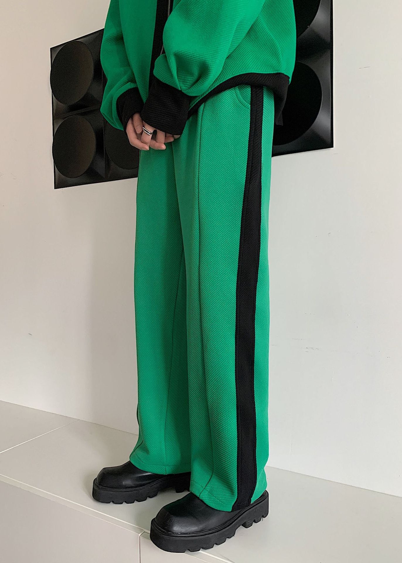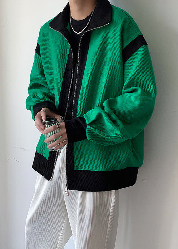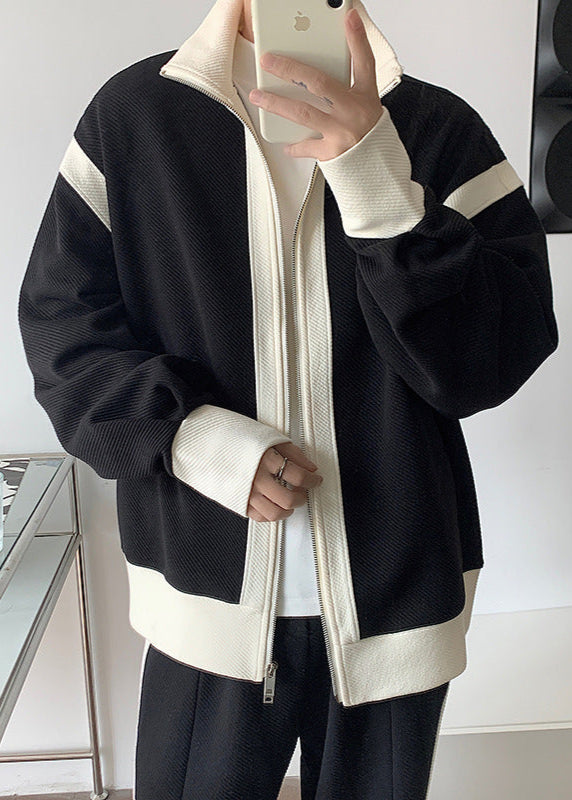 This men’s spring sports tracksuit features a two-tone color block design with contrast stitching. The full-zip hoodie includes a double zipper for adjustable ventilation and convenience, while the pants have an elastic waistband for a secure fit. Made from breathable fabric, the set is designed for active use including workouts and outdoor activities during transitional weather.