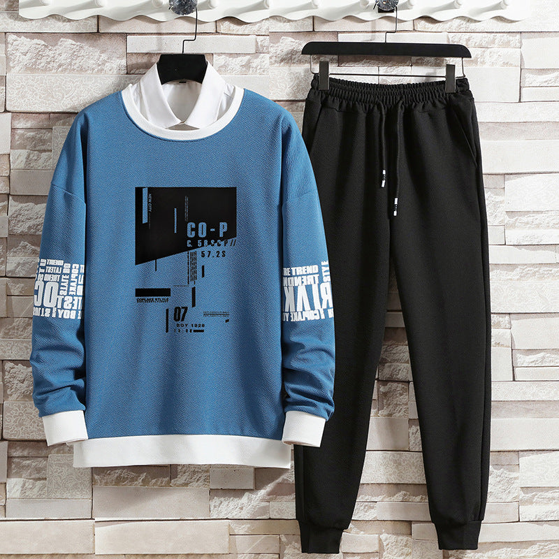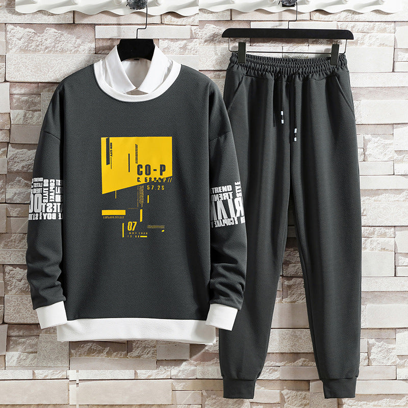 This men’s autumn two-piece set includes a long-sleeve top with a round neckline and matching bottoms designed for daily wear. The top features a modern cut that pairs with the structured fit of the pants to create a coordinated look. Suitable for everyday activities during cooler months, the set balances functionality and ease of wear.