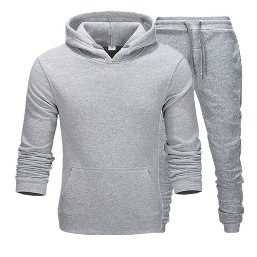 This men's winter tracksuit set includes a pullover hoodie and jogger pants, both designed with a plus velvet lining for added insulation in cold weather. The hooded sweater features long sleeves and a plain design for easy pairing, while the joggers provide a secure fit suitable for indoor or outdoor wear. Ideal for daily routines, workouts, or errands during winter conditions.