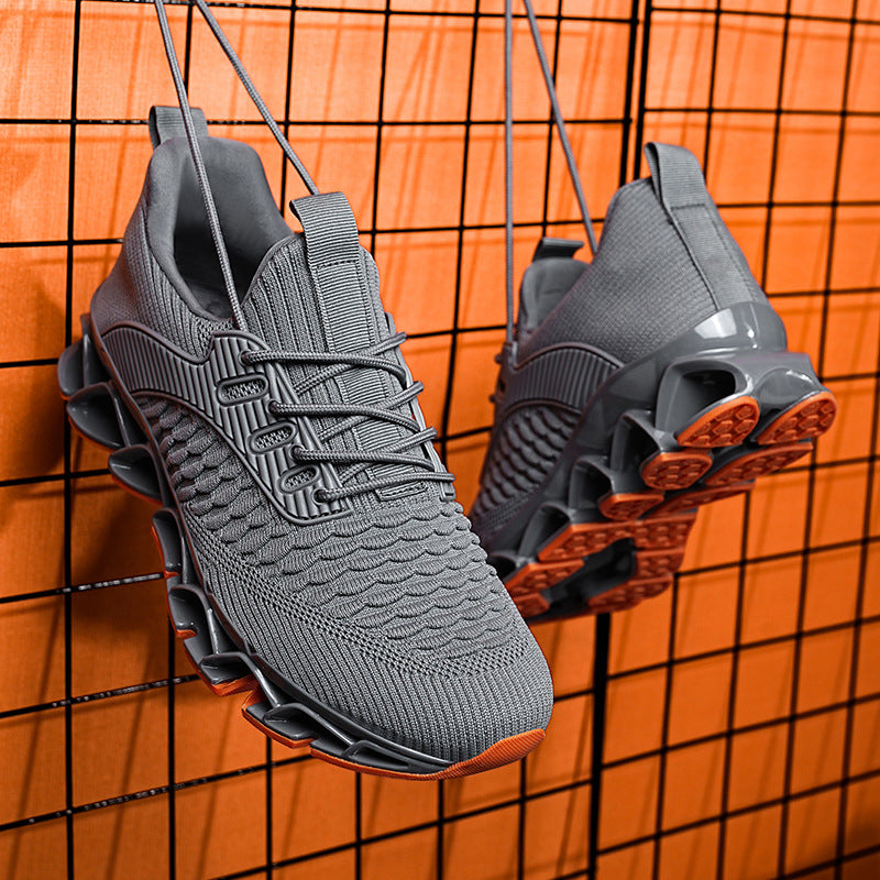 Male Sneakers Breathable Two-Layer Cowhide Upper TPU Blade Sole Lace-Up Low Heel