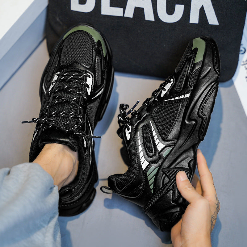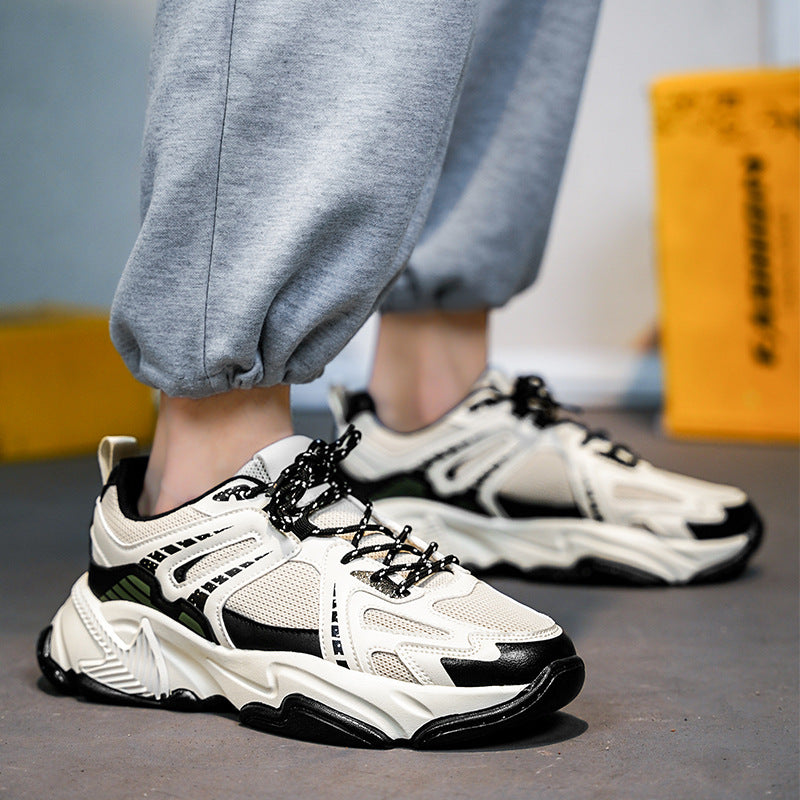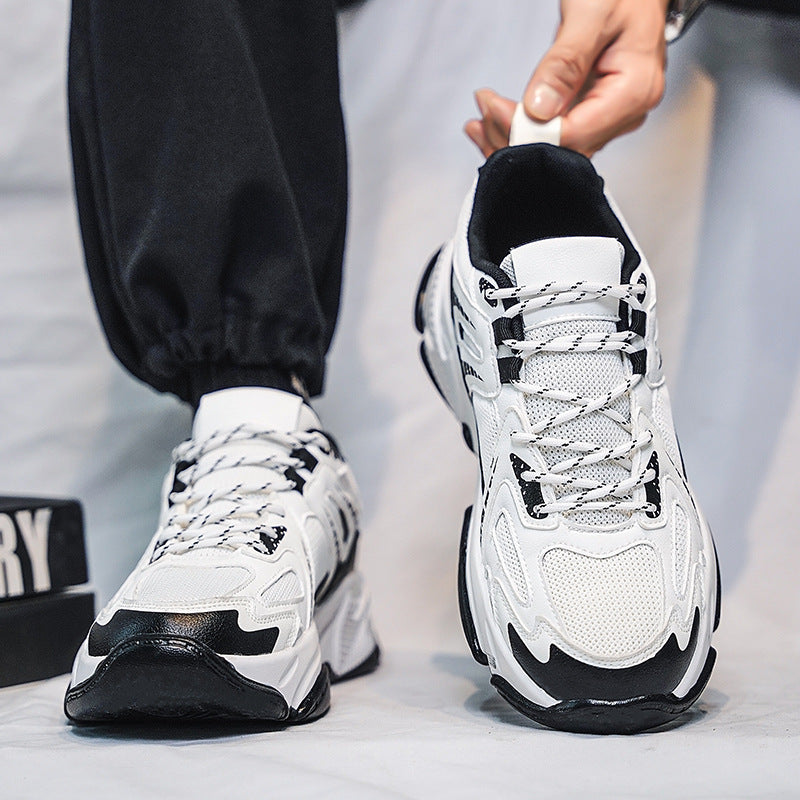 Male Spring Mesh Running Shoes Plus Size Thick Wear-Resistant Sole Height-Increasing