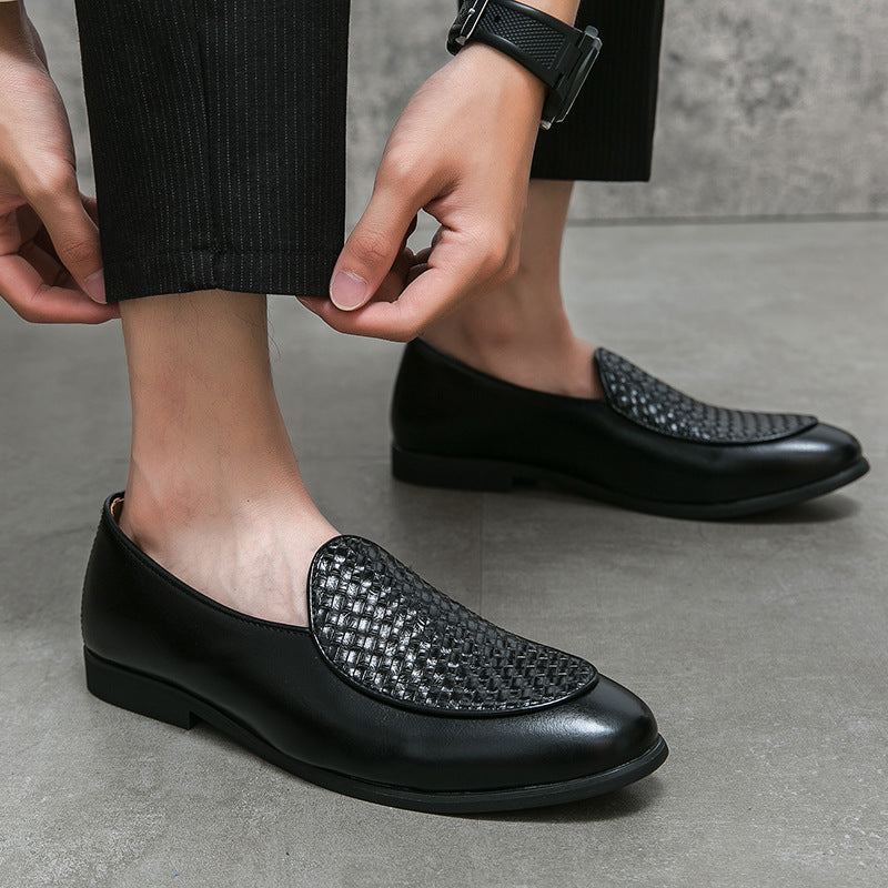 These men's loafers feature a lightweight construction with a pointed toe shape for a sharp, professional appearance. The slip-on design provides ease of wear, while the rubber sole enhances traction and wear resistance for reliable use. Detailed stitching adds subtle design elements suitable for office and everyday environments.