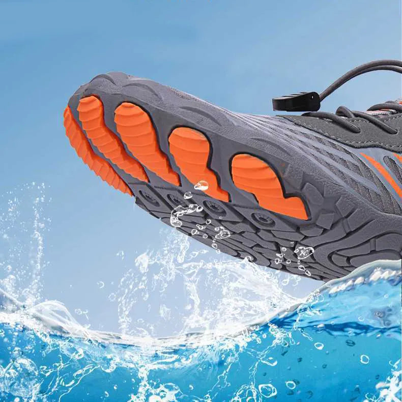 Designed for summer activities, these men's water shoes feature a low-cut design and breathable structure, ideal for both indoor and outdoor use. The slip-on build makes them easy to wear for swimming, wading, or beach use. A rubber sole supports grip on wet or uneven terrain.