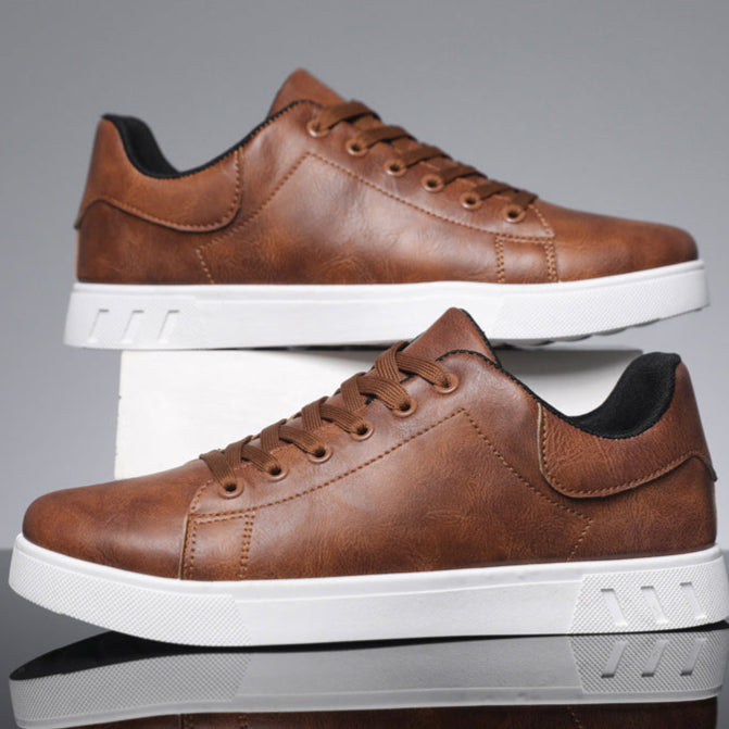 Men’s Lace-Up Flat Shoes PU Upper Rubber Sole Low Top