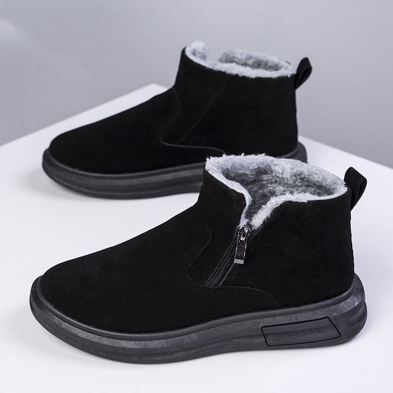 These men’s winter ankle boots feature a practical side zipper for easy wear and removal. Designed with a flat heel and sturdy rubber outsole, they provide reliable stability for daily use. The ankle-high build and soft inner lining help maintain warmth, making them a suitable choice for colder weather. Finished with detailed stitching, these boots combine seasonal function with a clean, structured design.