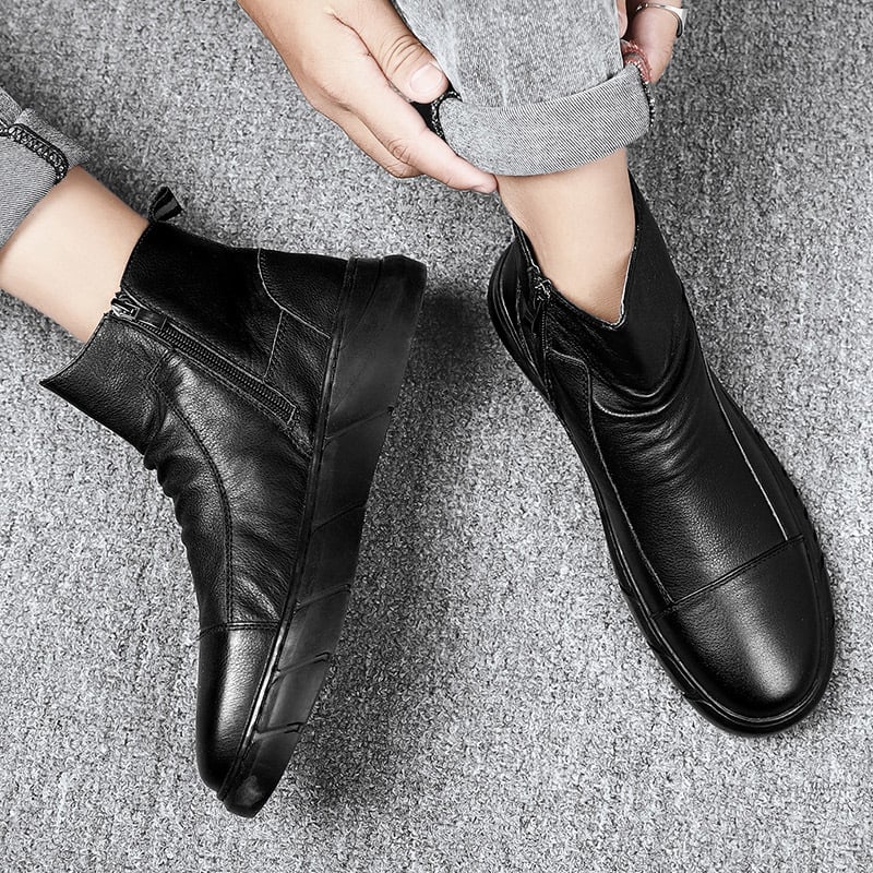 These men’s winter high-top snow boots are designed for insulation and reliable wear during cold conditions. The fleece lining helps retain heat, while the sturdy rubber sole offers dependable traction on different surfaces. Built with a low wedge heel and reinforced stitching, they combine stability with seasonal practicality.