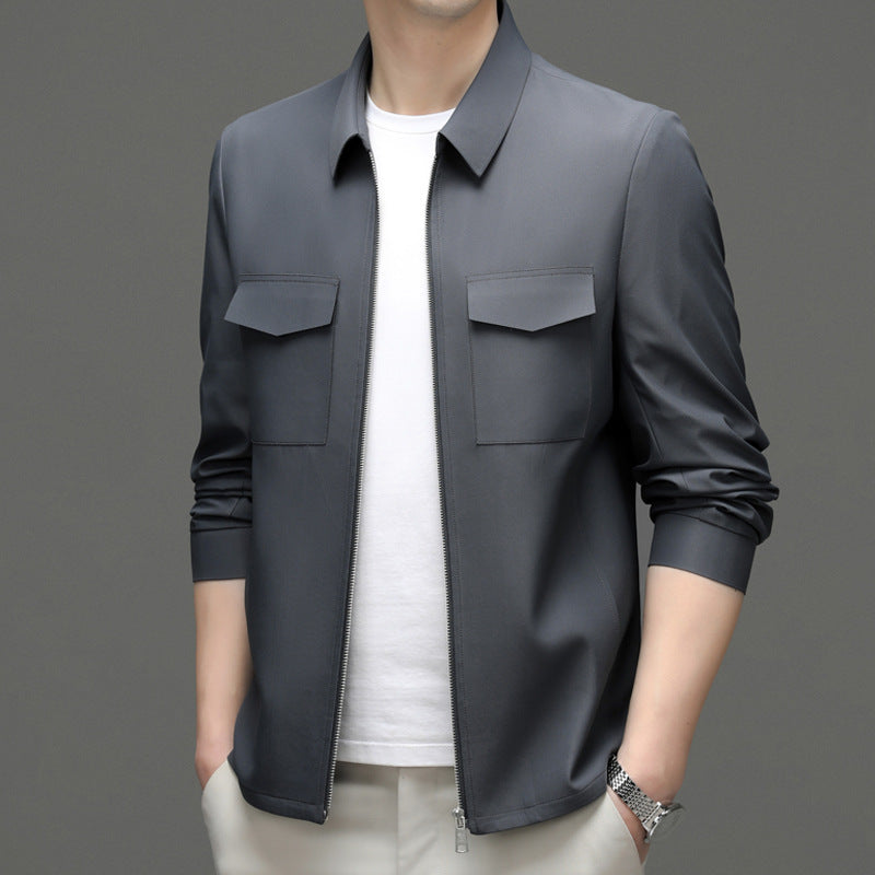 Men Spring Lightweight Jacket With Lapel Collar And Slit Pockets
