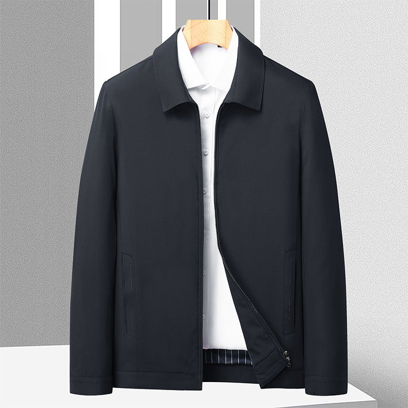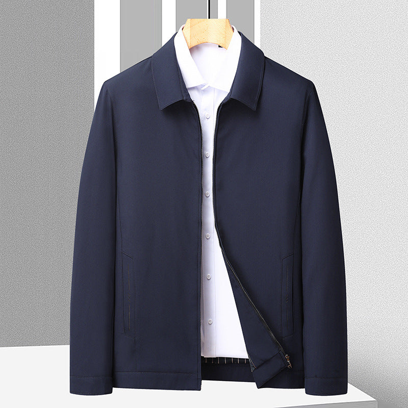 Men Spring Lapel Jacket With Zipper Closure And Side Pockets