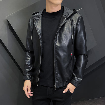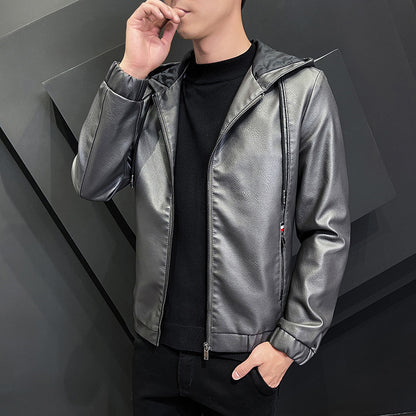 Men Winter Hooded Jacket With Faux Finish And Thick Lining