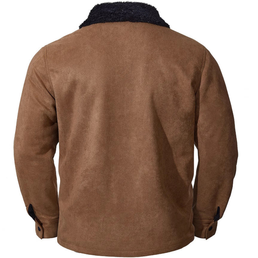Men Autumn Lapel Coat Loose Fit Suede Texture Slit Pockets