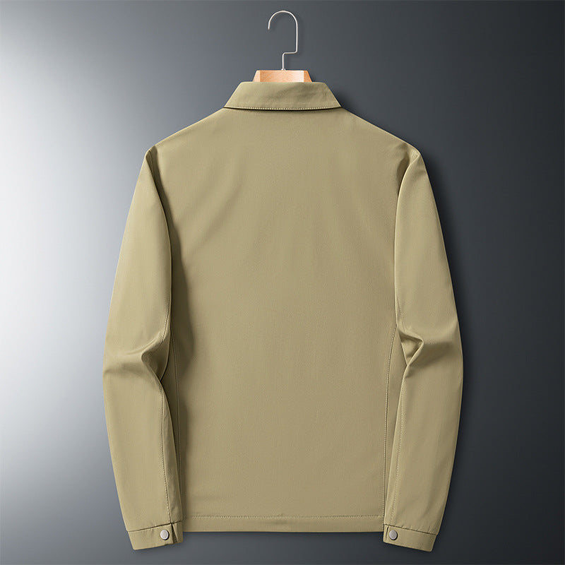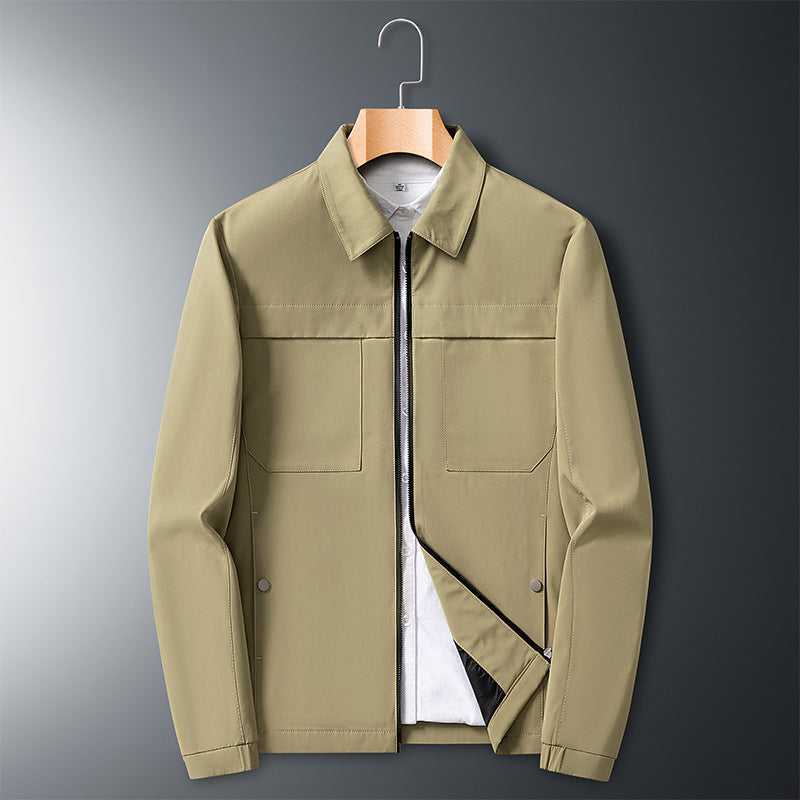 Men Spring Oxford Slim Fit Business Jacket Pleating Patch Pockets Khaki