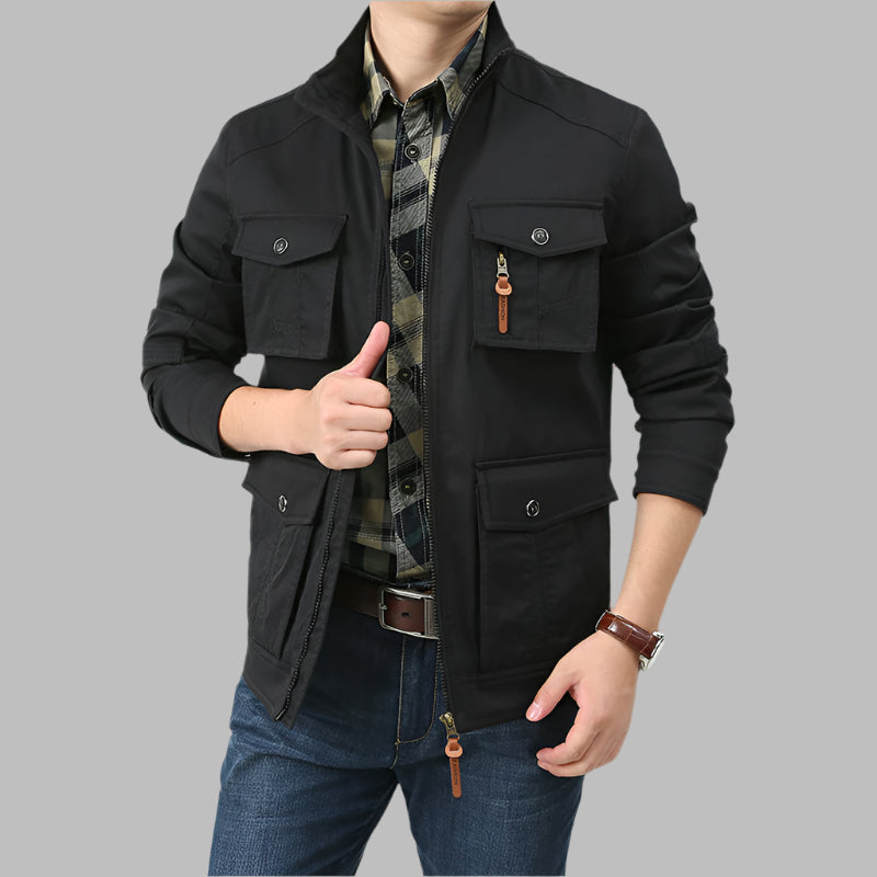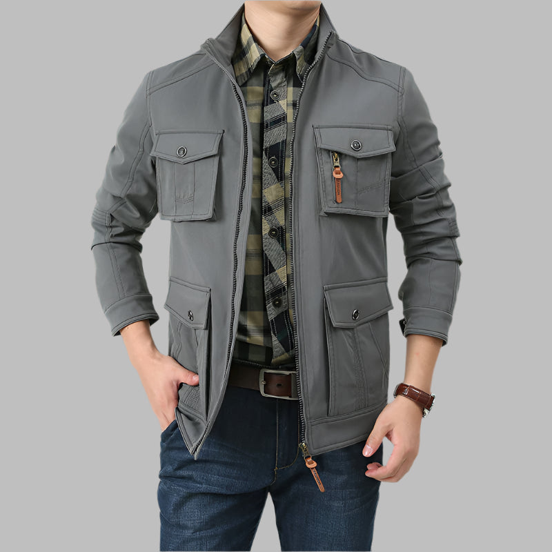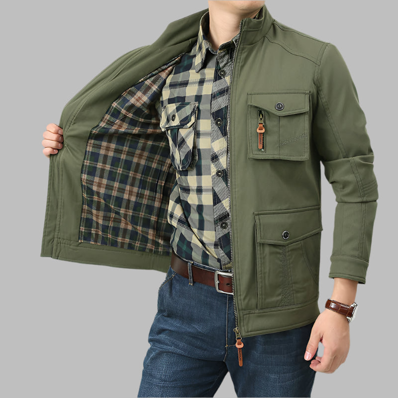 Men Spring Work Jacket With Windproof Design And Striped Detail
