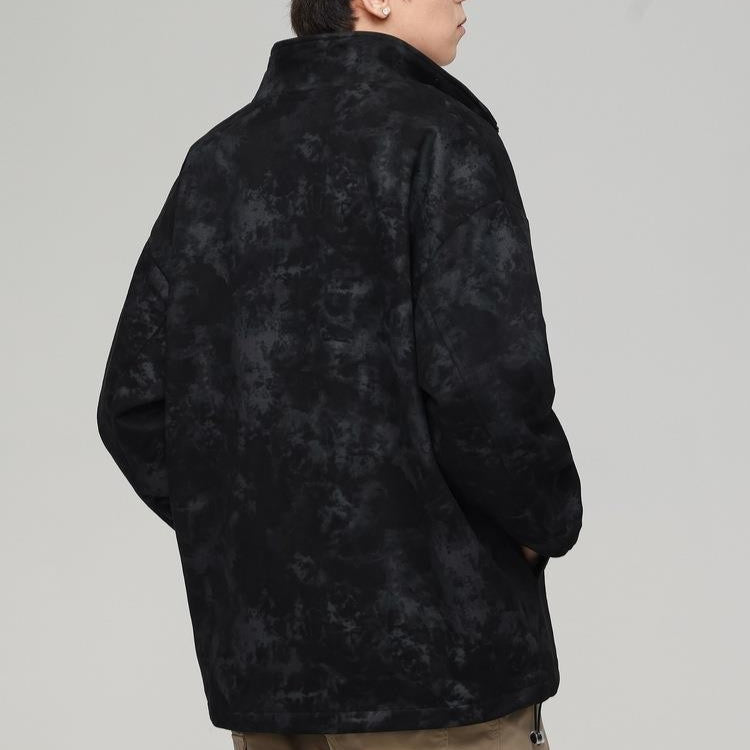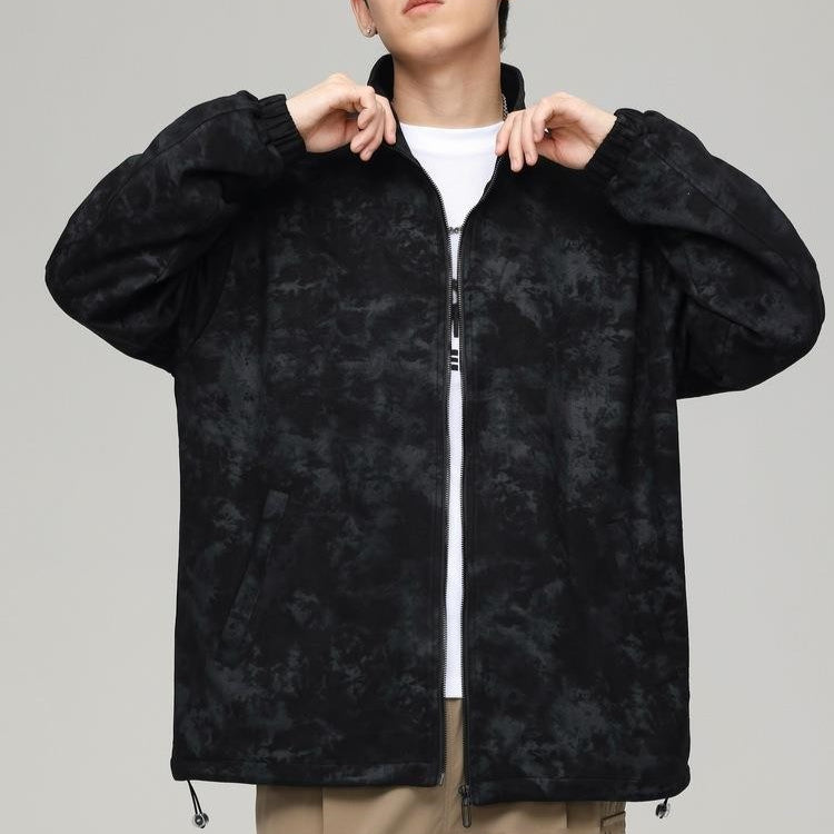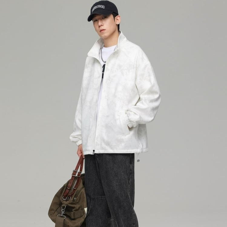 Men Autumn Jacket With Jacquard Pattern Loose Fit And Slit Pockets