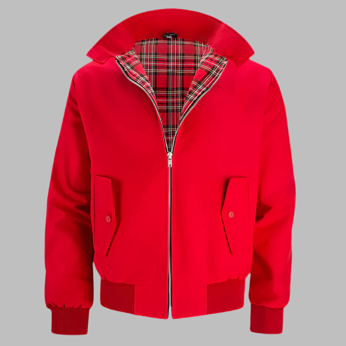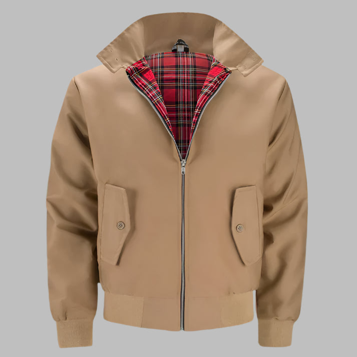 Men Spring Harrington Jacket With Ribbed Cuffs Front Zipper And Checked Lining