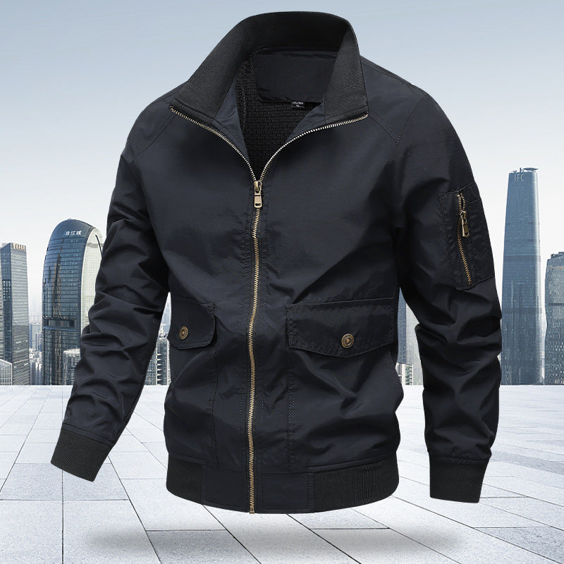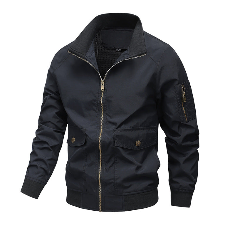 This loose fit nylon jacket is designed for transitional spring weather and offers lightweight coverage with a full inner lining. It features a polo collar, long sleeves, and seam pockets with flap covers for added functionality. The relaxed cut supports layering, while the structured silhouette provides a clean and practical appearance. Available in multiple sizes from L to 5XL and color options including black, khaki, and army green, it suits a wide range of daily use scenarios.