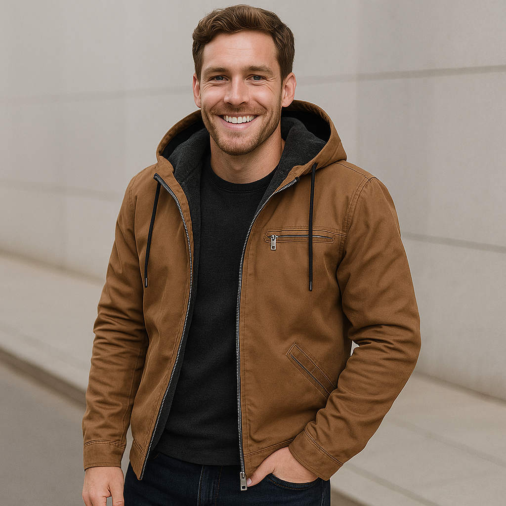 Men Winter Hooded Jacket Insulated Interior Adjustable Drawstring Pockets