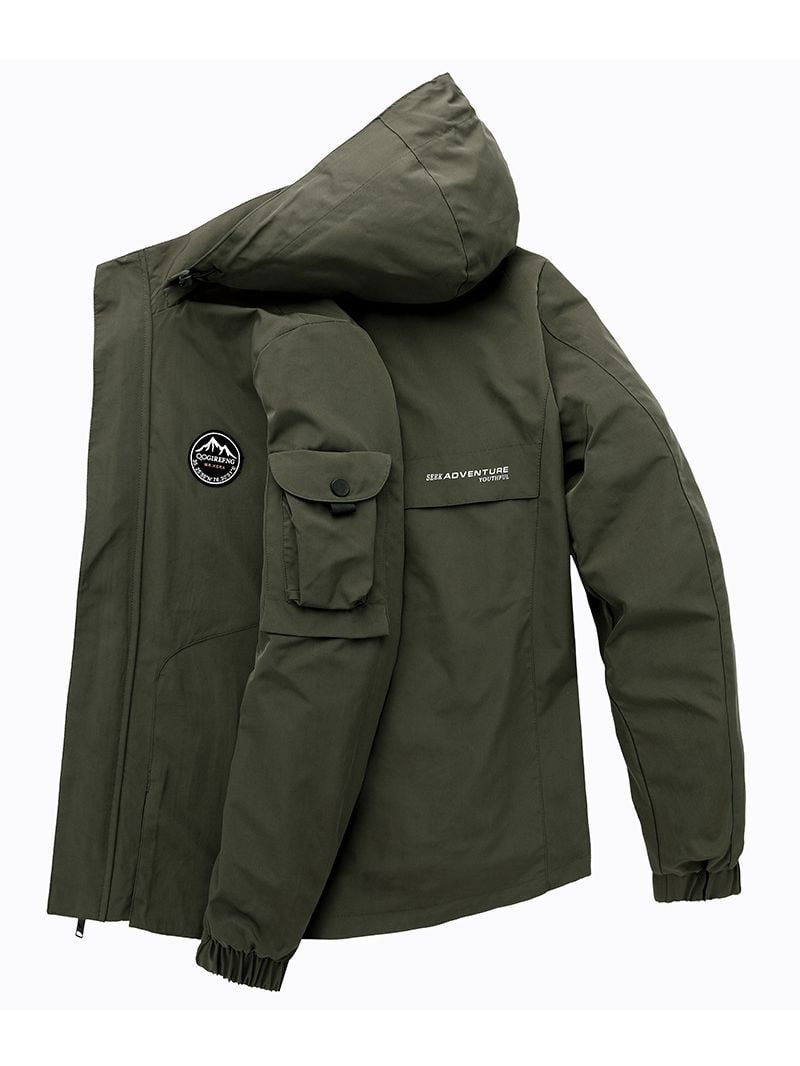 Title: Men’s Hooded Jacket Plus Size Outdoor Solid Color Long Sleeve