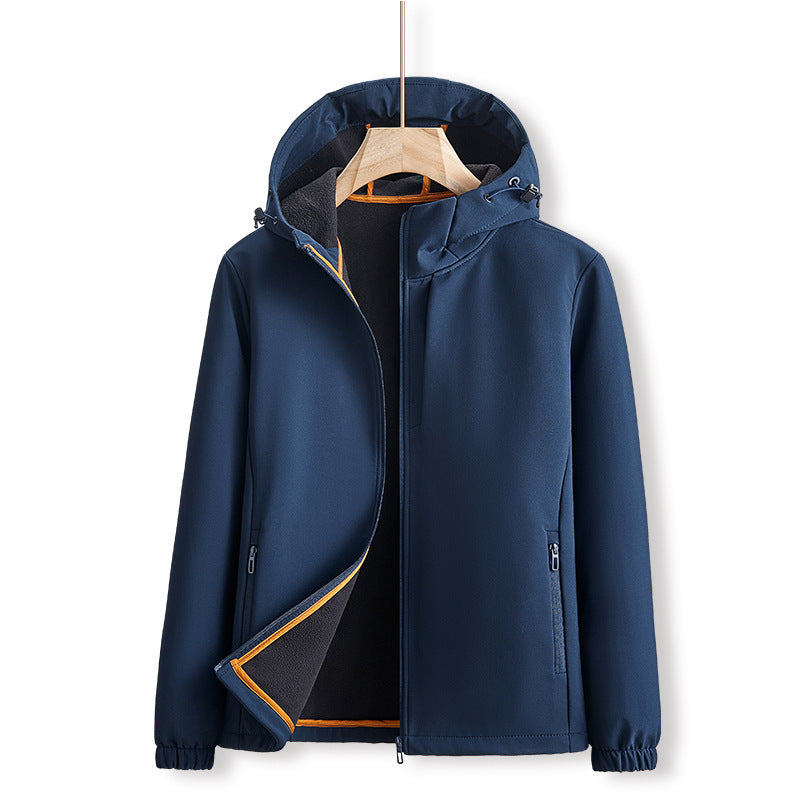 This men’s fall outdoor jacket is built in a softshell design with a clean solid-color finish. It features a non-removable structure and a zipper front closure for ease of wear. Designed without padding, it provides a lightweight layer that works well for outdoor activities and everyday use in transitional weather. Available in a wide size range, this jacket offers practicality and versatility.