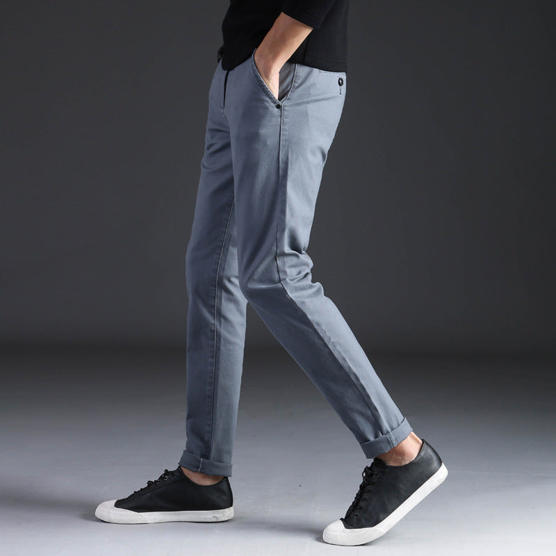 Men Slim Fit Trousers Mid Waist Straight Leg With Zipper Fly