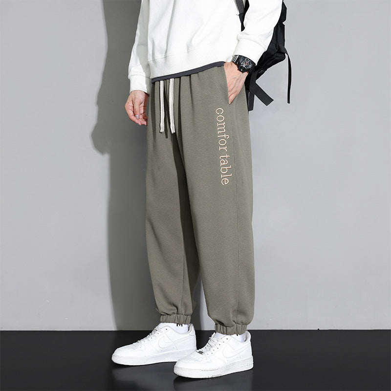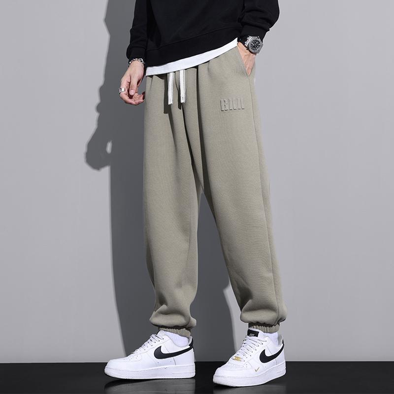 Men Sweatpants Plus Size Ankle Tie Loose Fit Mid Waist Micro Elastic