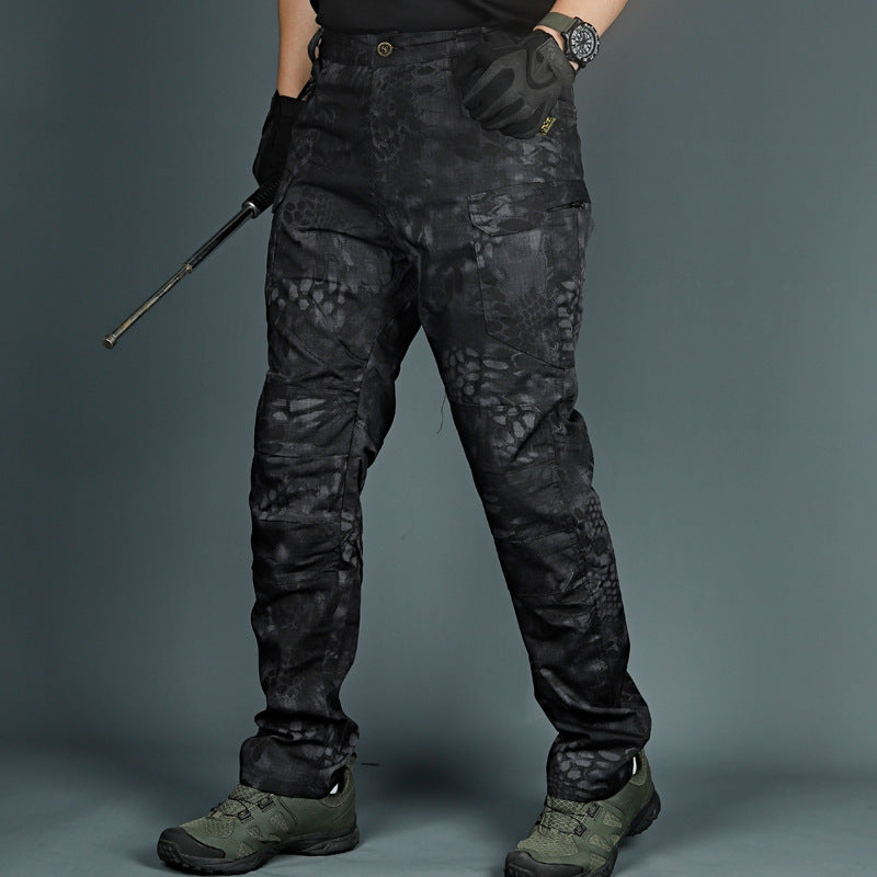 Men Work Pants Camouflage Multi Pocket Tactical Fit Adjustable Waist