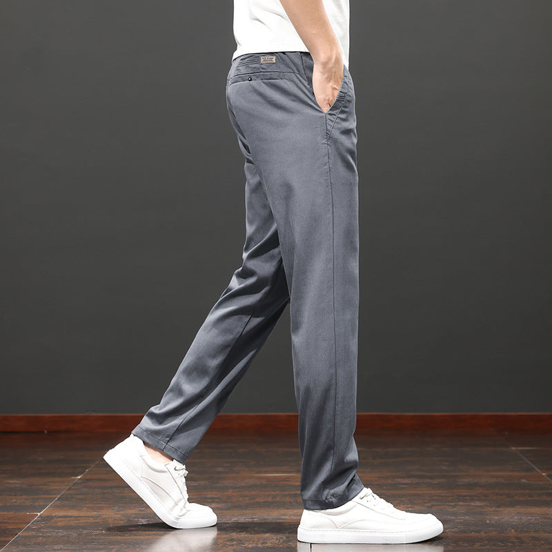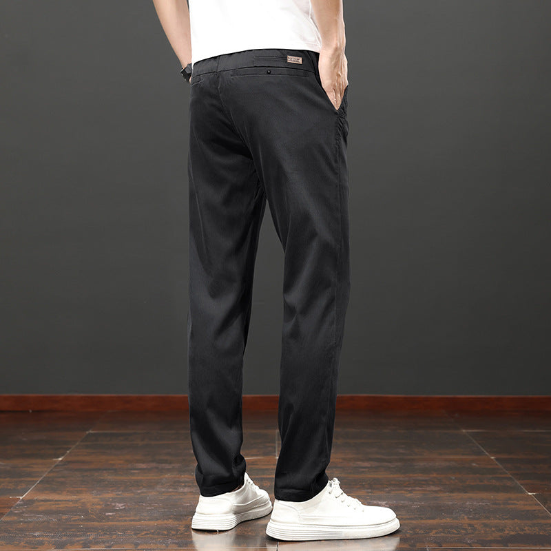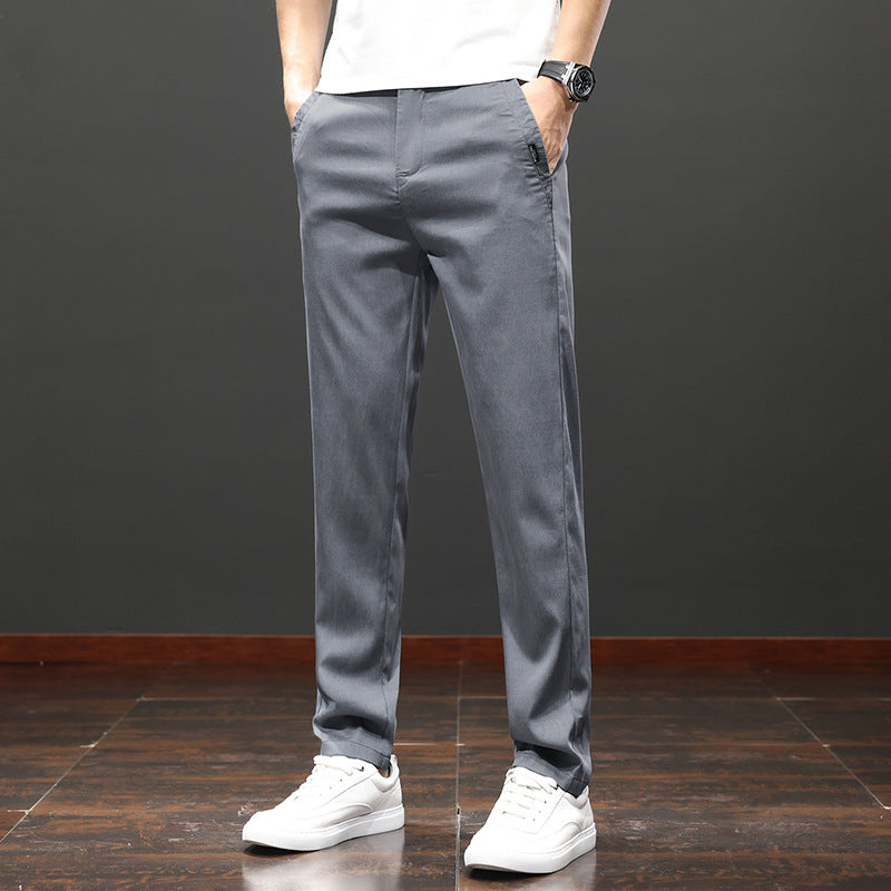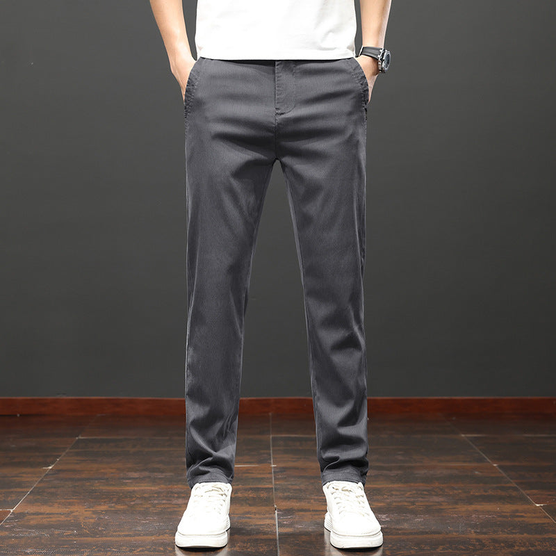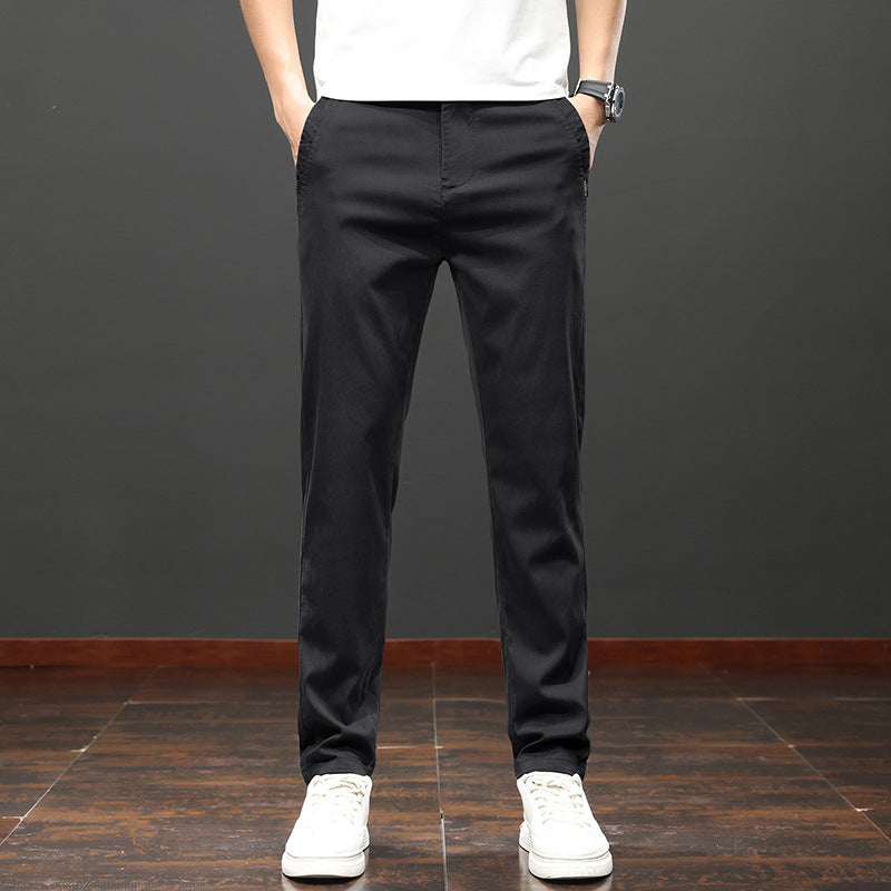 Men Pants Slim Fit Straight Leg High Waist Solid Color Zip Fly