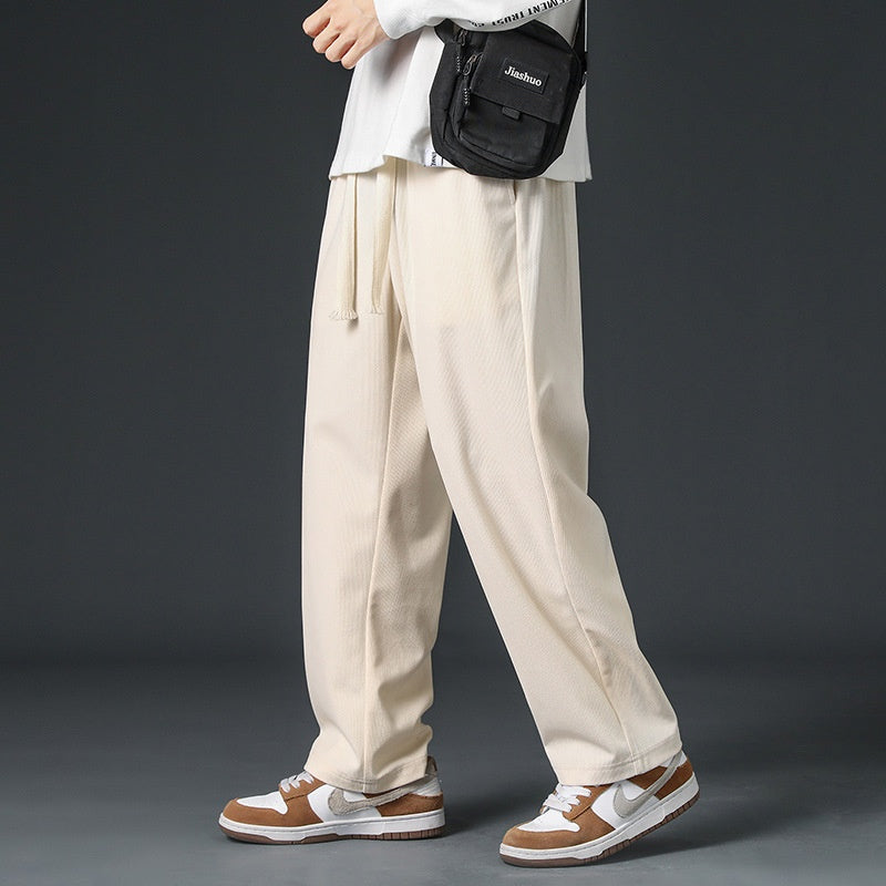 These men’s wide-leg corduroy trousers are designed for colder seasons, combining insulation with breathability through a fleece lining. The mid-waist fit and drawstring closure offer an adjustable, secure fit. The wide-leg cut allows for ease of movement, suitable for a variety of settings from outdoor activities to daily wear. Available in multiple colors and thickness options to meet different fall and winter needs.
