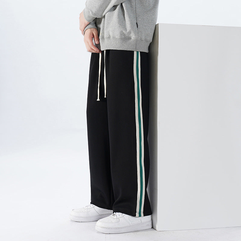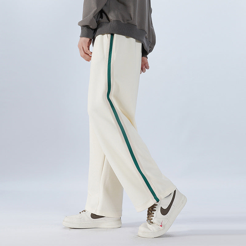 Men Spring Autumn Loose Wide-Leg Straight Pants Full Length Draped Fit