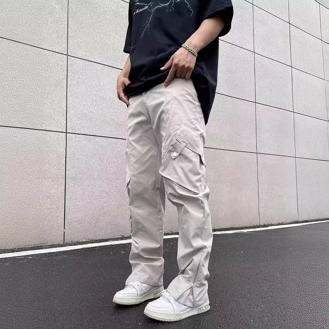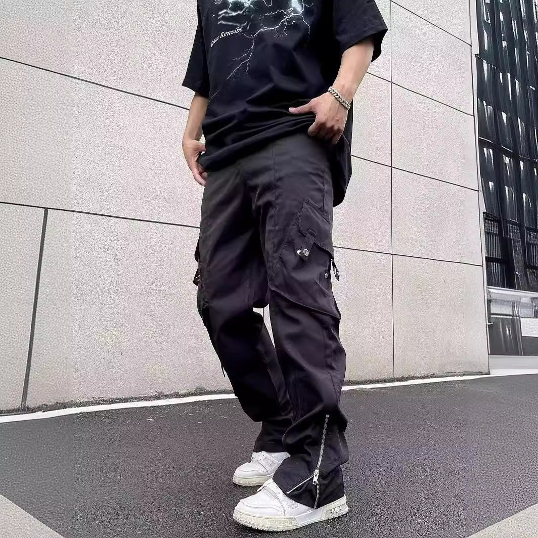 Men Loose Wide-Leg Overalls with Drawstring and Multi-Pocket Design