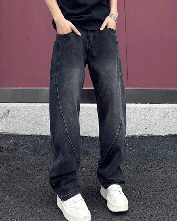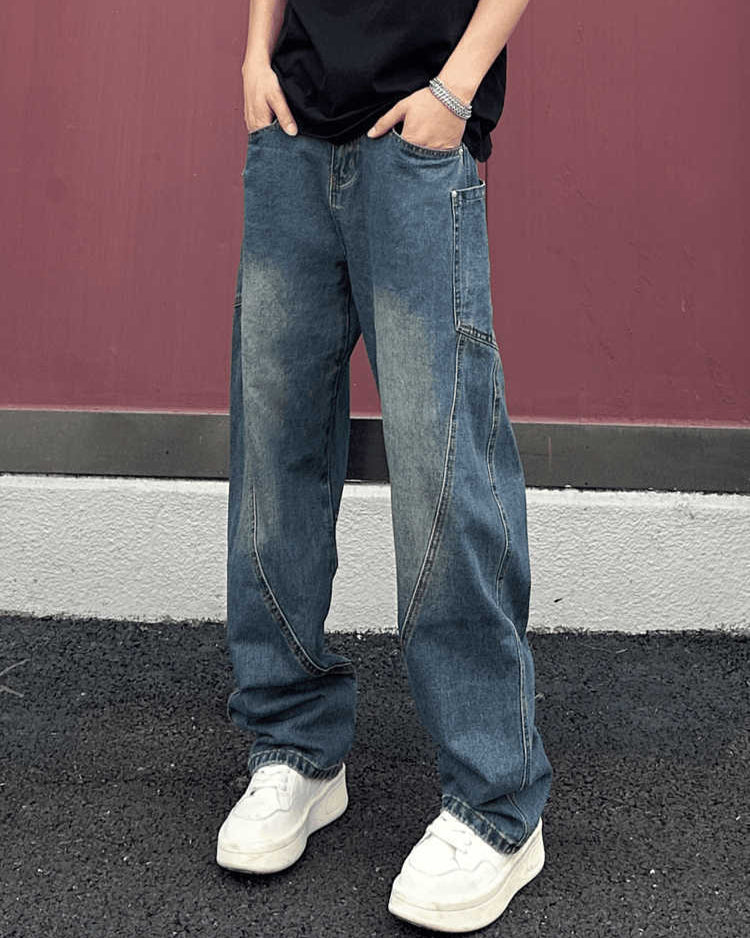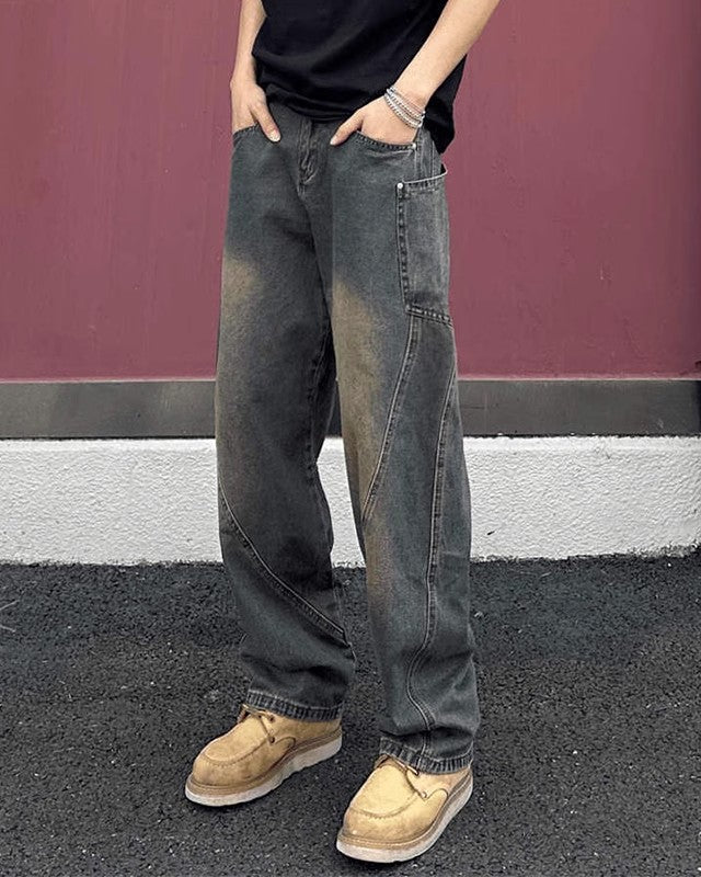 These men's denim jeans are designed with a straight-leg cut and a secure zip fly closure, making them suitable for spring and autumn wear. The mid-waist design offers a balanced fit, while the slight elasticity in the fabric supports ease of movement. Available in black, mud yellow, and retro blue, these jeans are adaptable for different daily settings and activities.