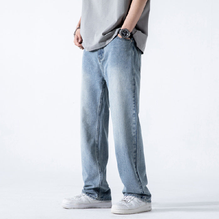 Men's Wide-Leg Jeans With Loose Straight Fit And Washed Finish