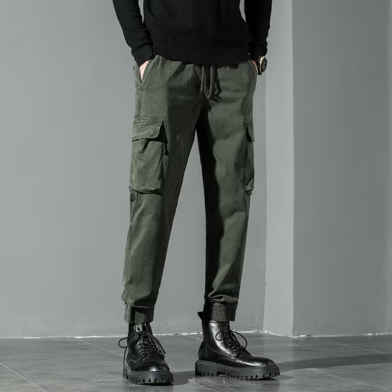 These Men's Jogger Pants feature a loose fit and straight-leg cut paired with a low-waist design for a relaxed silhouette. Made from a breathable and durable cotton blend, they offer flexibility and shape retention for daily wear. Available in solid colors including black, army green, and gray, these pants are sized from M to 5XL to suit a range of body types.