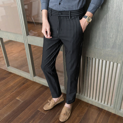 Men's Dress Pants Slim Fit Striped Straight Leg Mid Waist