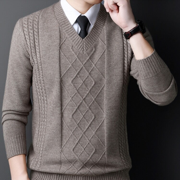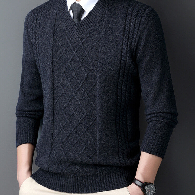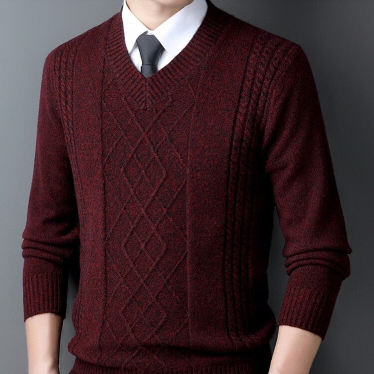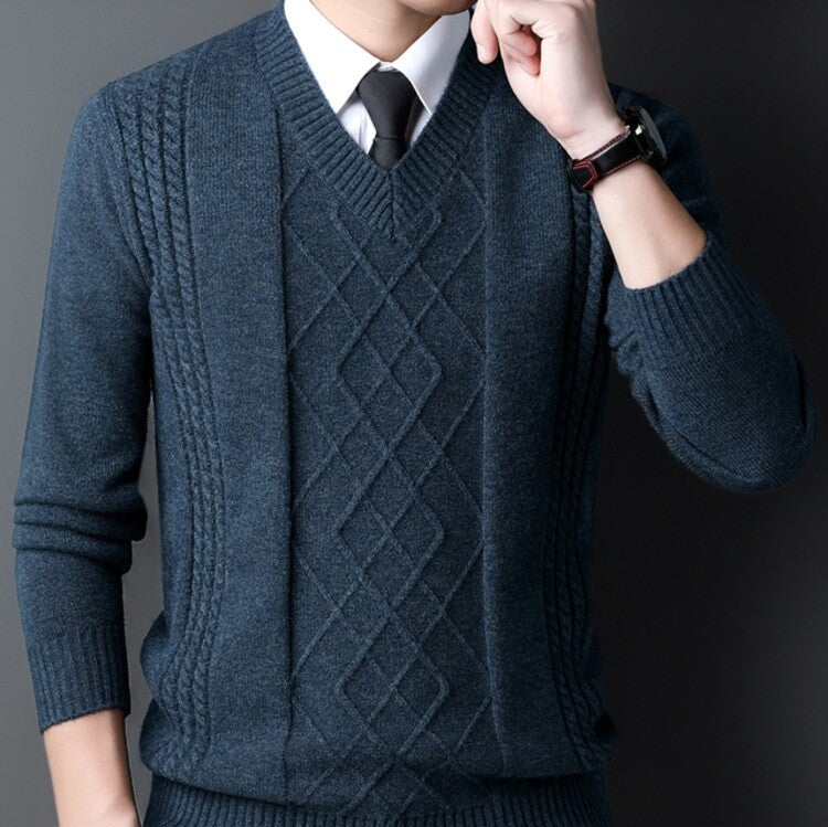 Men Winter Pullover Sweater Ribbed Collar Long Sleeve Knitted
