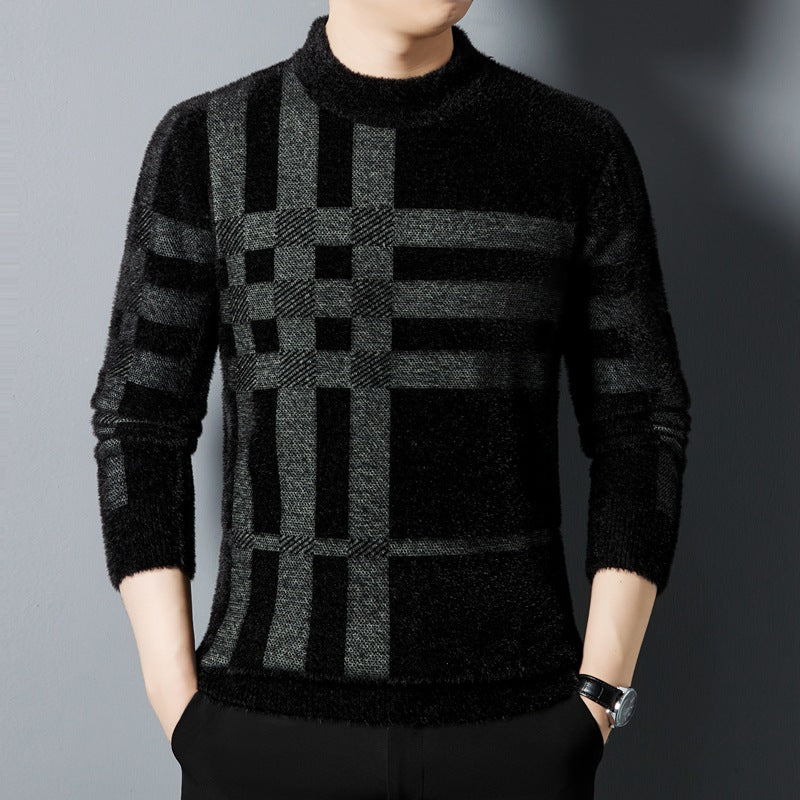 Men Winter Pullover Thick Knit Striped Slim Fit
