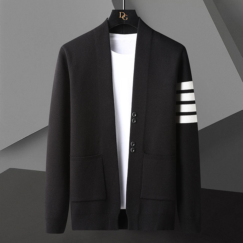 Men Open Front Knitted Cardigan Coat With Long Sleeve