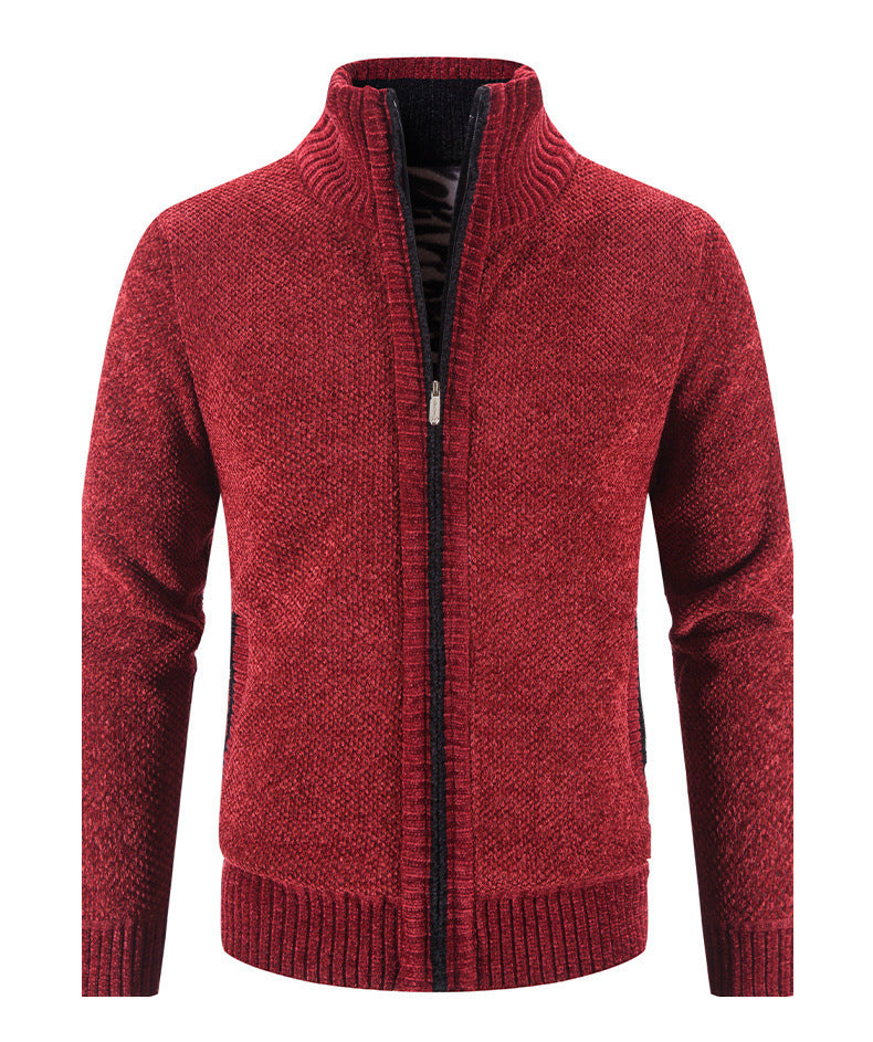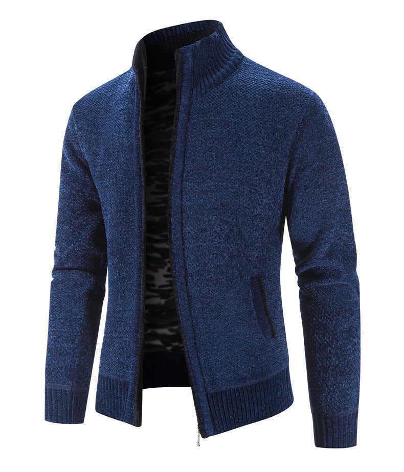 Men Autumn Zip-Up Knit Cardigan Jacket Fleece Lined Loose Fit
