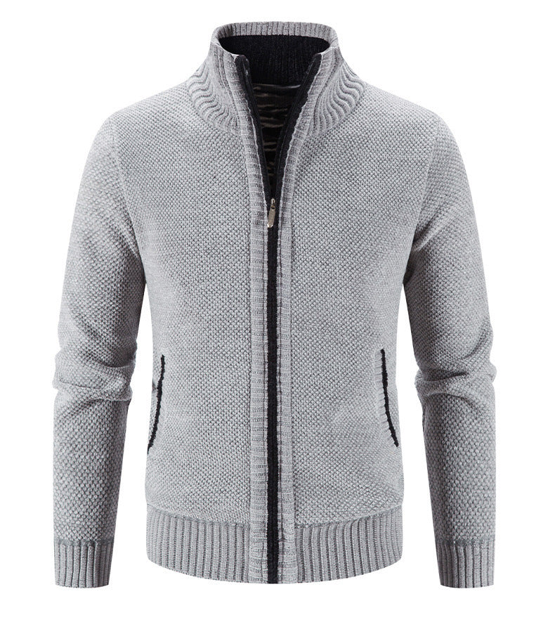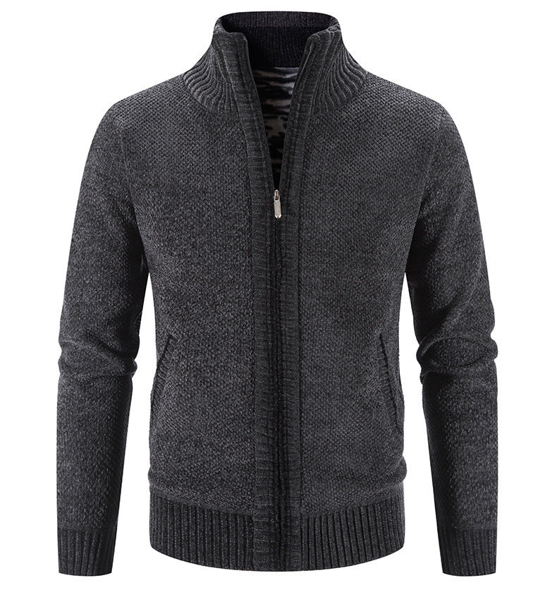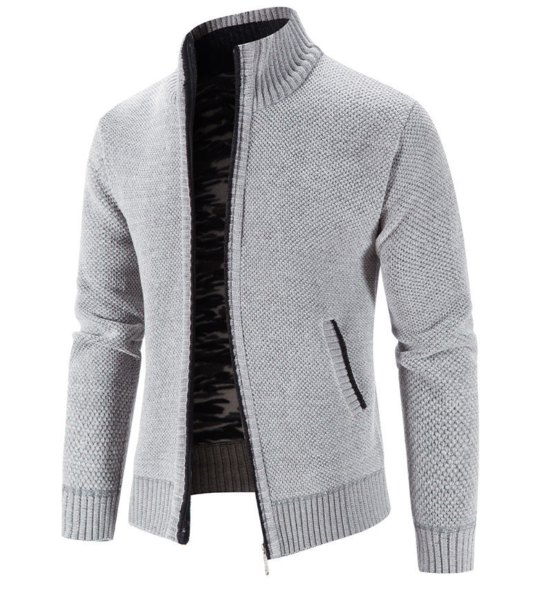 This zip-up knit cardigan jacket is designed with a fleece lining to provide insulation during cooler autumn days. Its loose fit allows for easy layering over other garments, and the zip-up front offers adjustable coverage. The knit construction balances flexibility with breathability, making it suitable for transitional weather. Available in multiple sizes and colors, it adapts well to different outfit combinations.