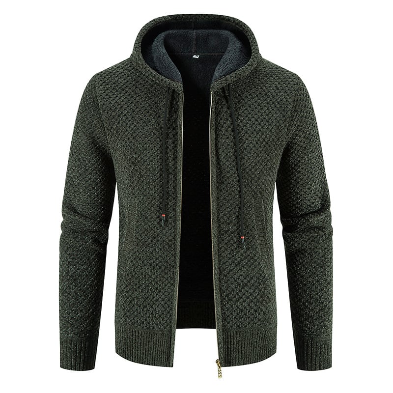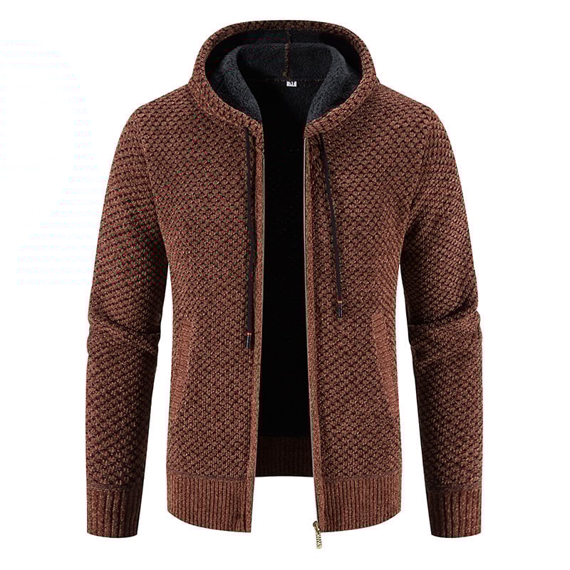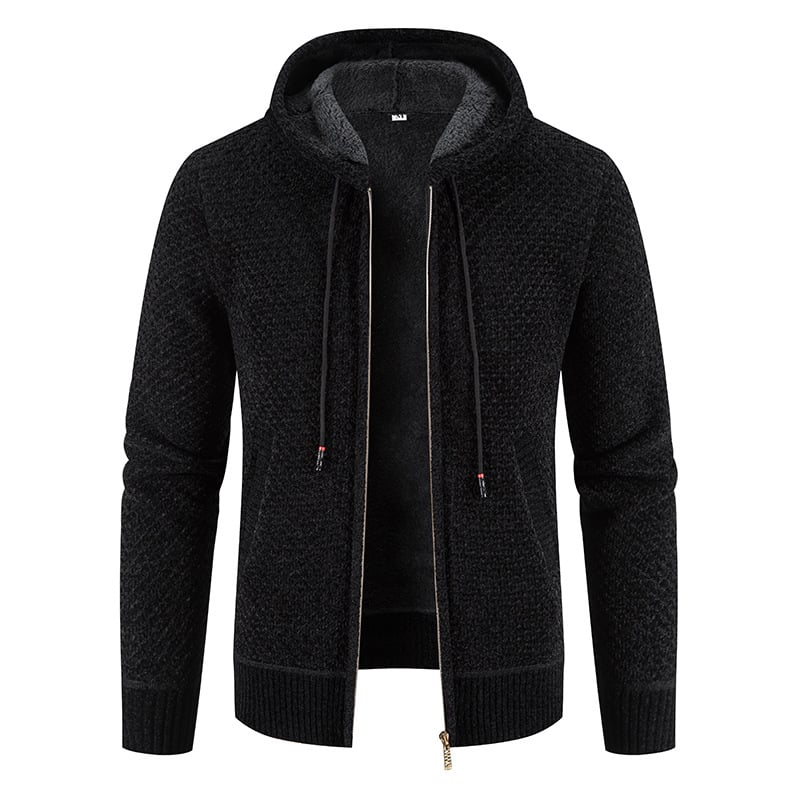Men's Fleece-Lined Hooded Cardigan Coat with Velvet Interior | Long Sleeve Zip-Up
