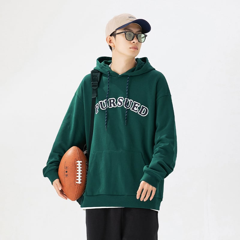 This men’s hooded sweatshirt features a loose fit design with embroidered details on the front, making it a practical choice for everyday wear. The long sleeves and adjustable hood provide coverage, while the embroidery adds a distinctive element to the overall look. Available in multiple color options, it offers versatility for different outfits and occasions.