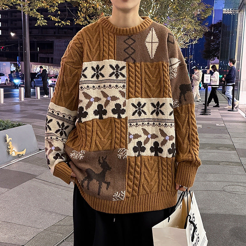 Men’s Sweater Pullover Round Neck Loose Fit Long Sleeve