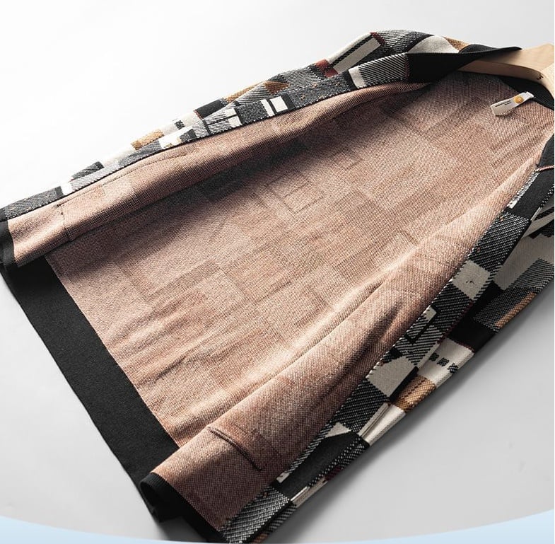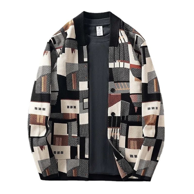 Men’s Cardigan Sweater with Irregular Color Block Design